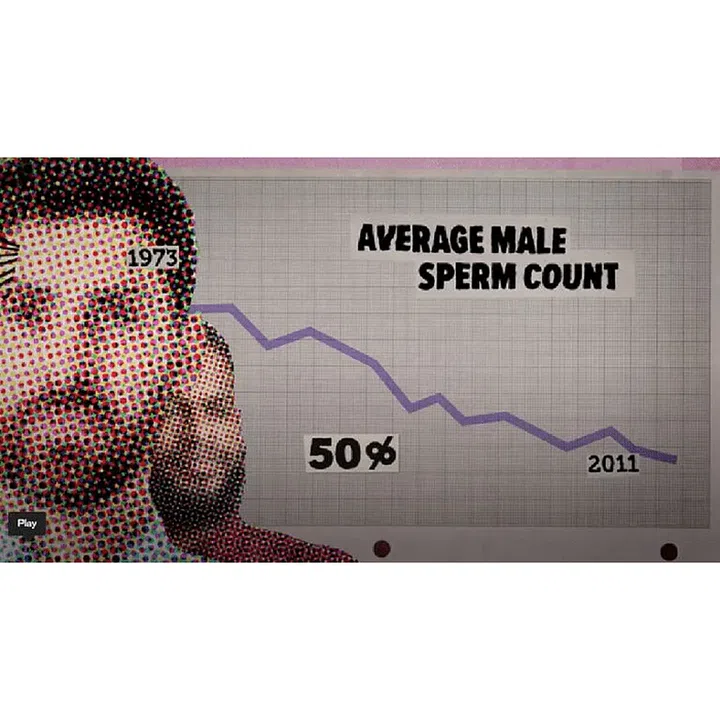 In a study of 43,000 men from 19732 to 2011, the average sperm count fell by 50 per cent.