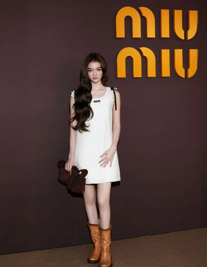 Meovv’s Ella Gross in Miu Miu at the Miu Miu Fall/Winter 2026 in Paris