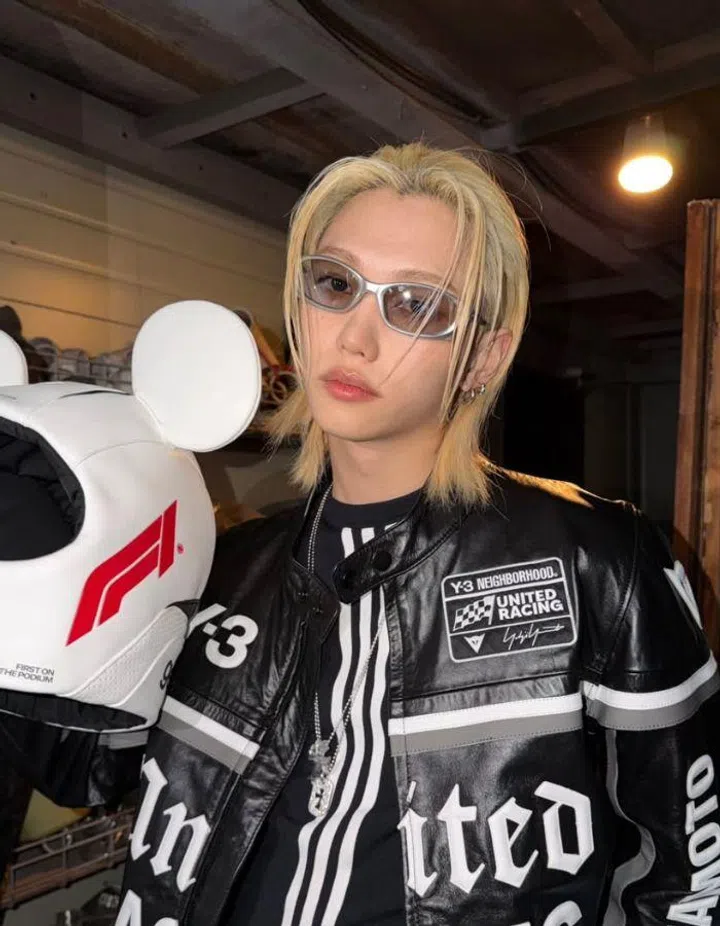 Felix from Stray Kids in Gentle Monster’s new 2026 Circuit Collection - a collection inspired by the dynamic energy of F1® racing and the playful spirit of Disney’s Mickey and Friends