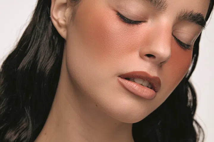 For the cheeks, skip the usual pinks and corals and reach for apricot or brownish tones, pressing them gently onto the apples of your cheeks. Makeup artist Lasalle Lee suggests blending a peachy nude liquid blusher with a maroon or terracotta hue for a sultry, lived-in effect. Extend the color lightly across the nose bridge and around the eyes to mimic sun-kissed skin. Finish with a soft dusting of bronzer to sculpt the cheekbones — nothing too heavy or harsh. For the eyes, a swipe of bronzer or any warm-toned shadow subtly defines the lids and completes the toasty, radiant look.