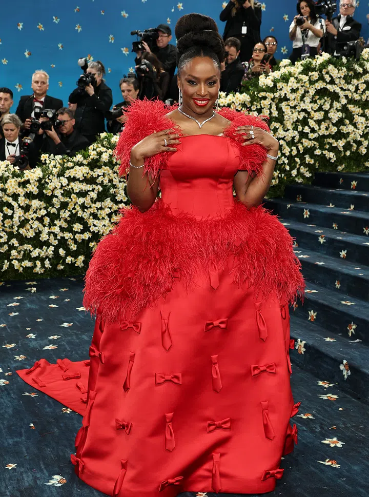 As for, Chimamanda Ngozi Adichie, who was also dressed in Prabal Gurung, turned heads when she appeared on the red carpet with a sophisticated yet striking red ensemble that was paired with custom Michelle Recycled Polyester Platform Sandals in Red.