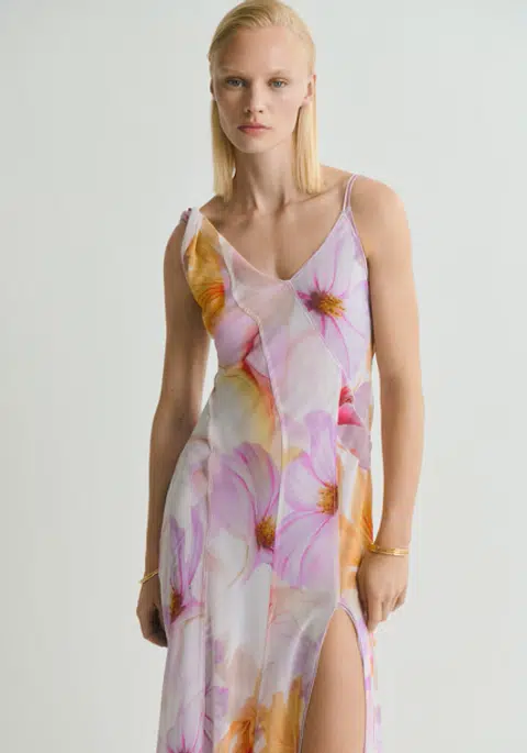 A timeless expression of femininity, this floral dress is adorned with a delicate, flowery print that brings a sense of freshness and charm. With its flattering silhouette and soft, flowing fabric, it moves effortlessly with you, perfect for garden parties, or sunlit strolls. Romantic yet refined, it’s a piece that instantly brightens your wardrobe.
