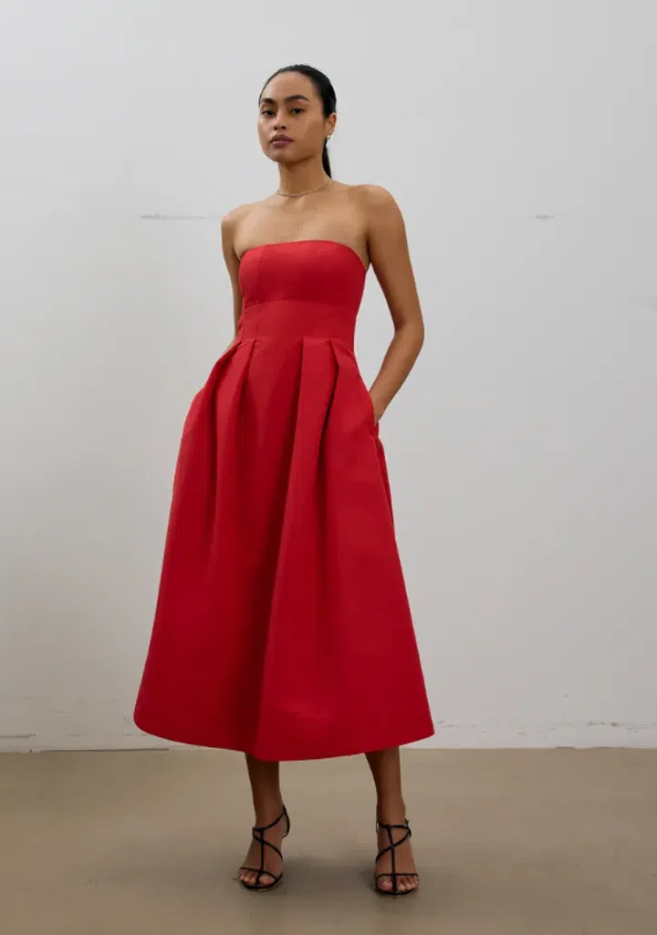 Falling somewhere between a midi and a maxi, this red dress strikes the perfect balance between drama and refinement. Its length and silhouette make it ideal for more formal occasions — think an evening at the Esplanade Theatre or a night at the opera. The bold red commands attention, while the graceful cut ensures timeless elegance. Pair it with classic heels and minimal jewellery for a look that’s sophisticated, not overstated.