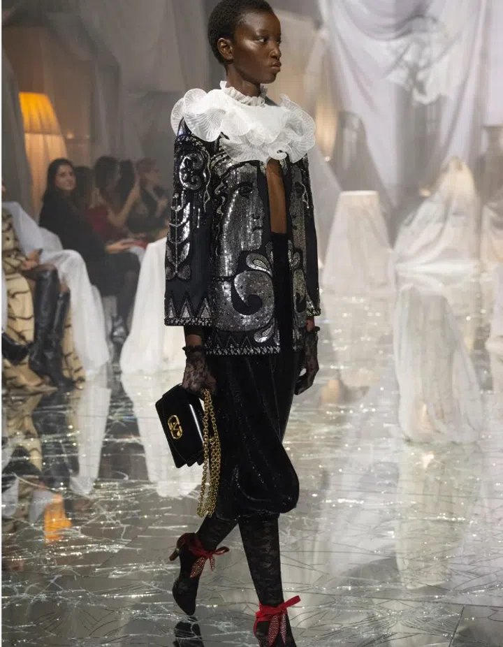 The iconic Dynasty television series comes to life on the runways as tulle, bows polka dots and strong-shouldered jackets take centrestage at Bottega Veneta, Acne and Louis Vuitton.