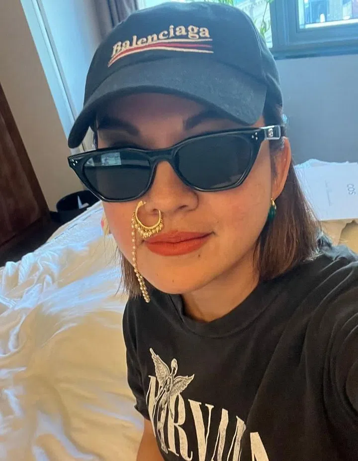 On her selection: "On days where my schedule is more relaxed, I love wearing the Balenciaga cap with a more dressed down look."