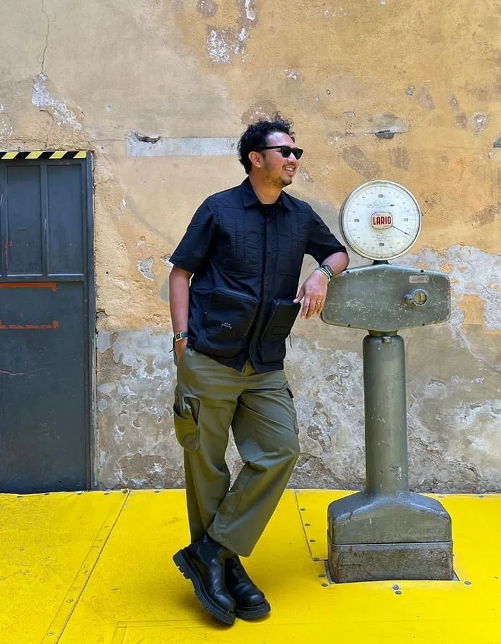 On his selection: "This A Cold Wall short-sleeve shirt in water repellant nylon came in handy this past rainy Milan Fashion Week. From an Italian luxury house to a brand with street cred, Vestiaire is a treasure trove for so many versatile menswear pieces."