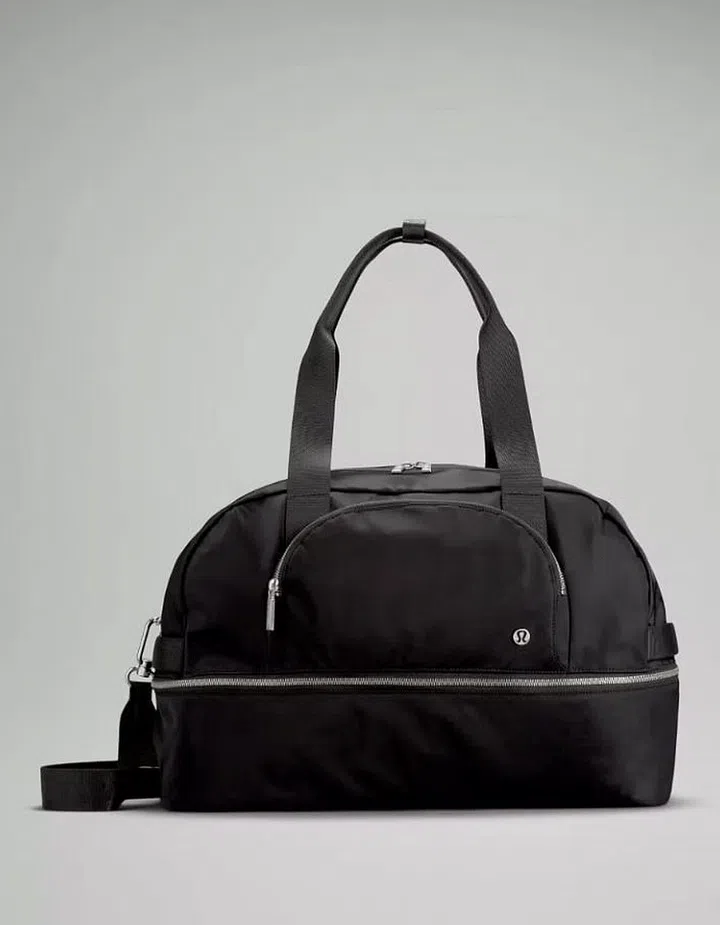 The Lululemon duffle bag easily helps you transition from the gym to work, and from work straight to vacation. The top handle design has a detachable strap to transform it into a shoulder or crossbody bag, which comes in super handy when it gets too heavy. It’s also constructed with nylon and polyester, making it both lightweight and easy to clean.