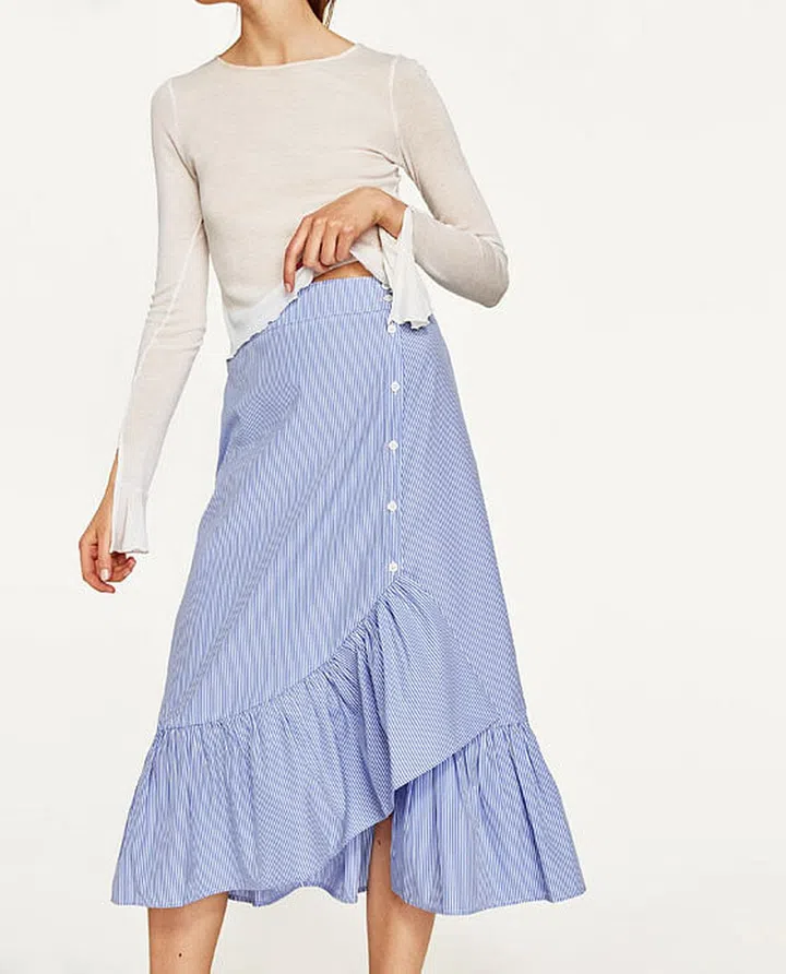 Striped ruffled skirt, $59.90 by Zara. Available at Zara online store