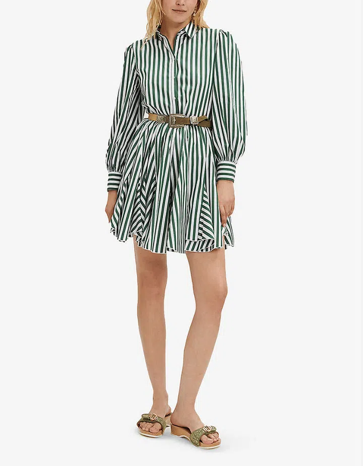 Rebelle Striped Belted Stretch-Cotton Blend Mini Shirt Dress, $500, Maje at Selfridges
