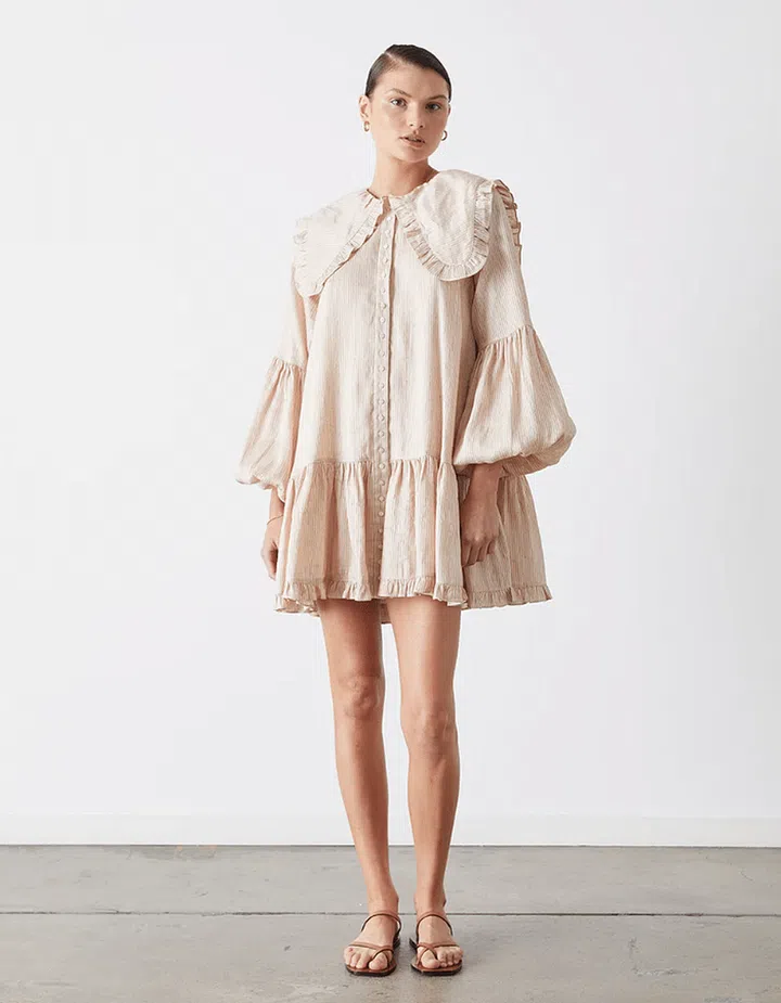 Feminine, flirty and playful, this beige-tone linen and silk shirt dress is the perfect weekend frock. Just imagine all the fab snaps you’re going to get when you wear this to your cafe of choice!