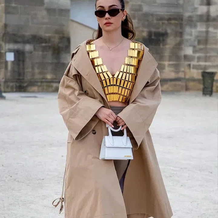 Amp up a tone-on-tone ensemble with a metallic vest inspired by ancient lamellar armour.