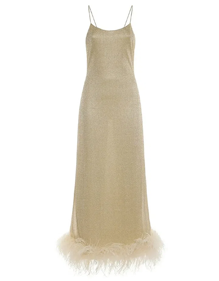 For a slightly more conservative yet equally sexy look, opt for a golden slip dress.
