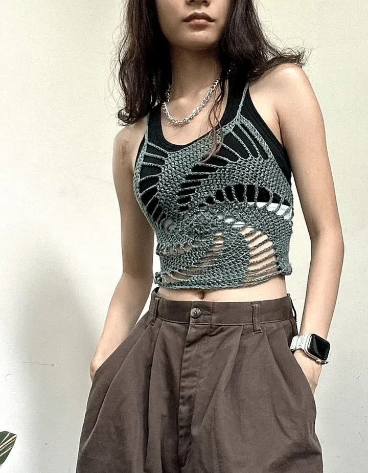 “Crocheting my own clothes definitely is another level of satisfaction and wearing it makes me feel really good and confident. I appreciate the pieces more and I wear them very often. It’s very healing to go through the slow process of making every single stitch to create something tangible from just yarn. There are so many different types of yarns to play with, I love the textured feel and visual feast I get when I use them while crocheting or knitting. I also love that there’s so many techniques that I haven’t explored.”