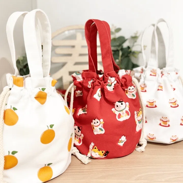 Whether you love to play mahjong or want to attract greater prosperity with fortune cats, there are a variety of playful designs to choose from with these drawstring bags. They can keep your oranges and ang bao safe while easily incorporating them into subsequent daily usage.