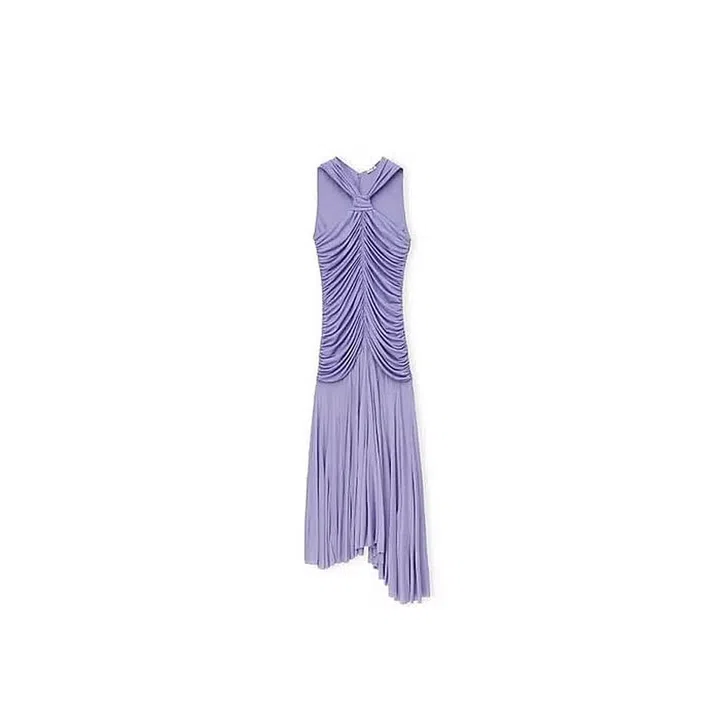 The ruched bust and godet pleat skirt on the halter neck drape dress is giving major goddess energy.