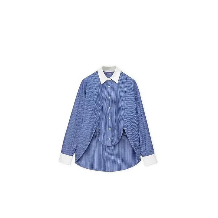Upgrade your rotation of oversized button-up shirts with this plastron-shaped shirt that has a curved hemline for some added drama.