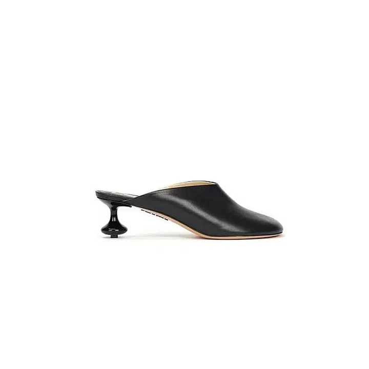Loewe has become known for their quirky approach to shoes, by crafting heels in the shape of bars of soap or nail polish bottles for a little shock factor. That tradition continues this season with this pair of slip-on mules with heels that reminds us of a chess piece.