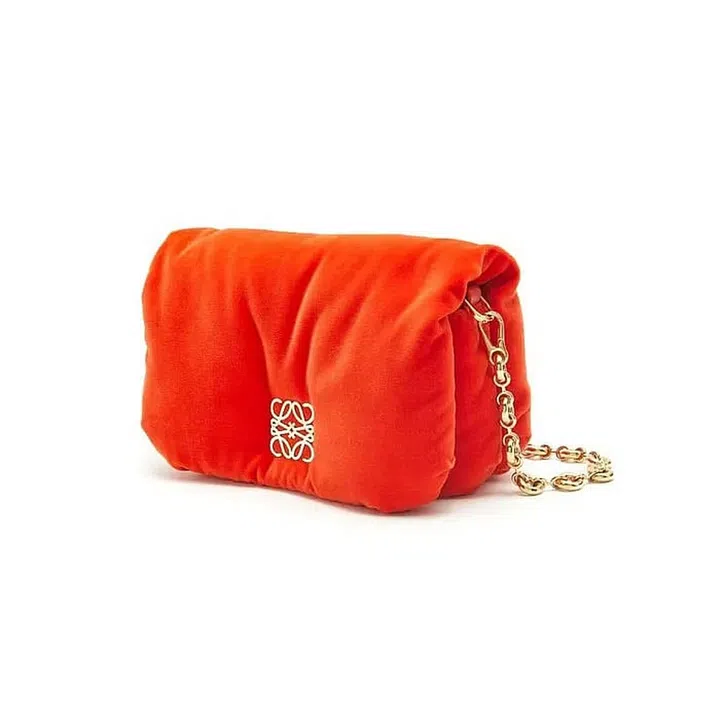 In his Fall/Winter 2022 collection, Anderson presented a supple leather version of the Goya Puffer. This time around, the bag welcomes a more luxurious finish in plush velvet.