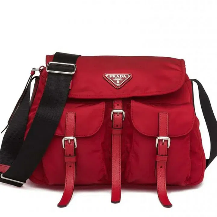 Leave an impression with this stunning scarlet Prada number just casually hanging off your shoulder while running errands all day.