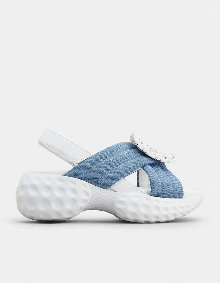 Viv' Run Light Strass Buckle Sandals in Denim, $2,120