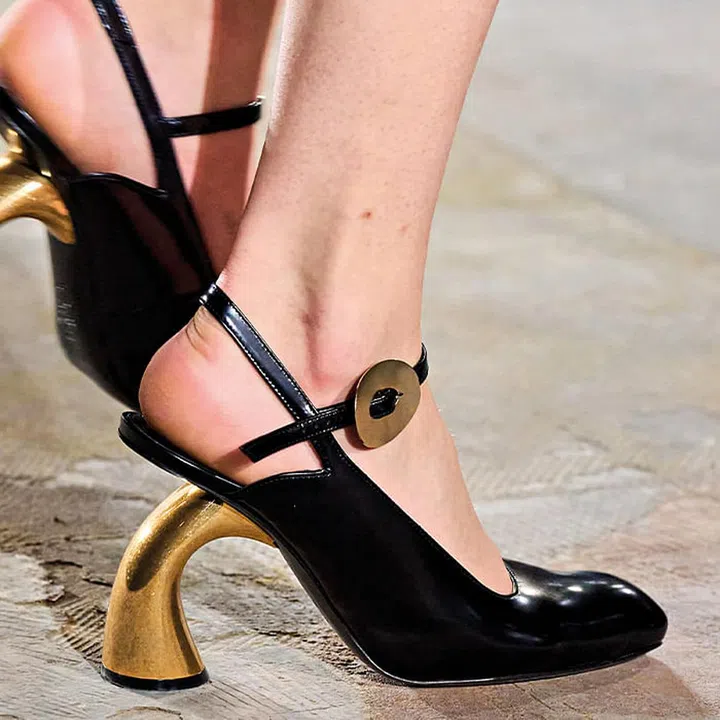 Heels with a surreal feel – that’s the memo most designers got when it came to glam footwear on the Spring runways. We’re particularly crushing on Ferragamo’s Gancini motif that formed the hardware heel on the Italian's brand new Elina strappy sandals.