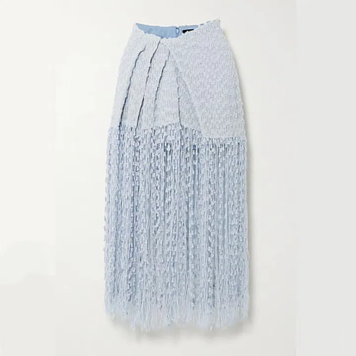 Jacquemus Capri fringed appliquéd tweed midi skirt, US$575.73 from Net-a-Porter