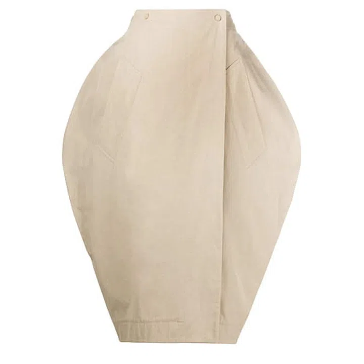 What we love about this tulip shaped skirt from Bottega Veneta is its contemporary artsy feel. Made with a voluminous structured shape, this skirt brings to mind the art of sculpted ceramics.
