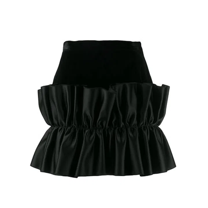 Christopher Kane’s velvet mini skirt allows you to make a splash at your next big party. Made with large statement satin frills trimming the hem, this skirt will add a fun edge to your “going out’ look.