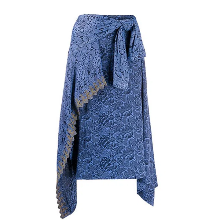 It isn’t really springtime without a cute floral skirt to usher you through it. Chloé’s blue crepe skirt features a gold embroidered scallop edge and an airy wrap design giving rise to the illusion of a layered silhouette affixed with ties at the waist.