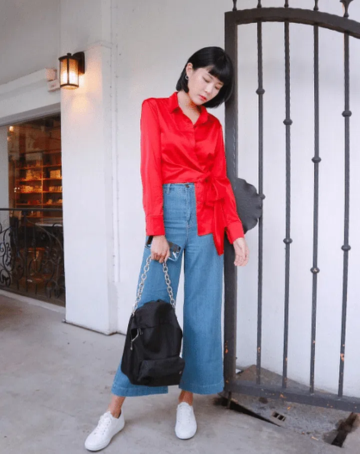 Want to know the most stylish way of wearing your flare jeans? Just take a leaf out of Carrie Wong’s style book; reach for a shirt (we love red because it’s the hottest colour for FW’17) and simply tuck it in. Then pair it with one of these white sneakers and celebrity-approved luxury bags and your #OOTD is sorted.