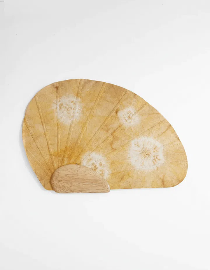 The tie dye pattern is a result of hand-dying techniques that use banana trunk fibres to lend a rich, ochre colour to the fabric.
