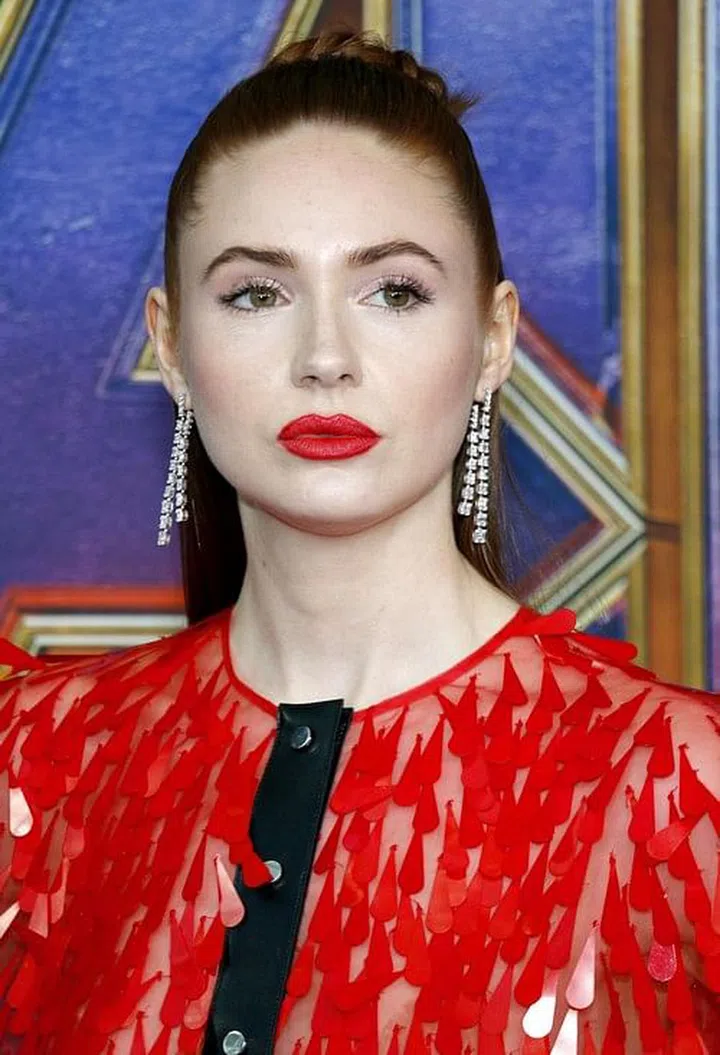 At the top of our list is this bold red lip look from Karen Gillan, who plays Nebula in the Avengers and Guardians of the Galaxy movies. We love that she matched her lippie to her outfit, and how a dash of pink eyeshadow completed the whole look. Plus, her brows looked bushy yet not overdrawn, and it helps that her lashes look so long and luscious here.