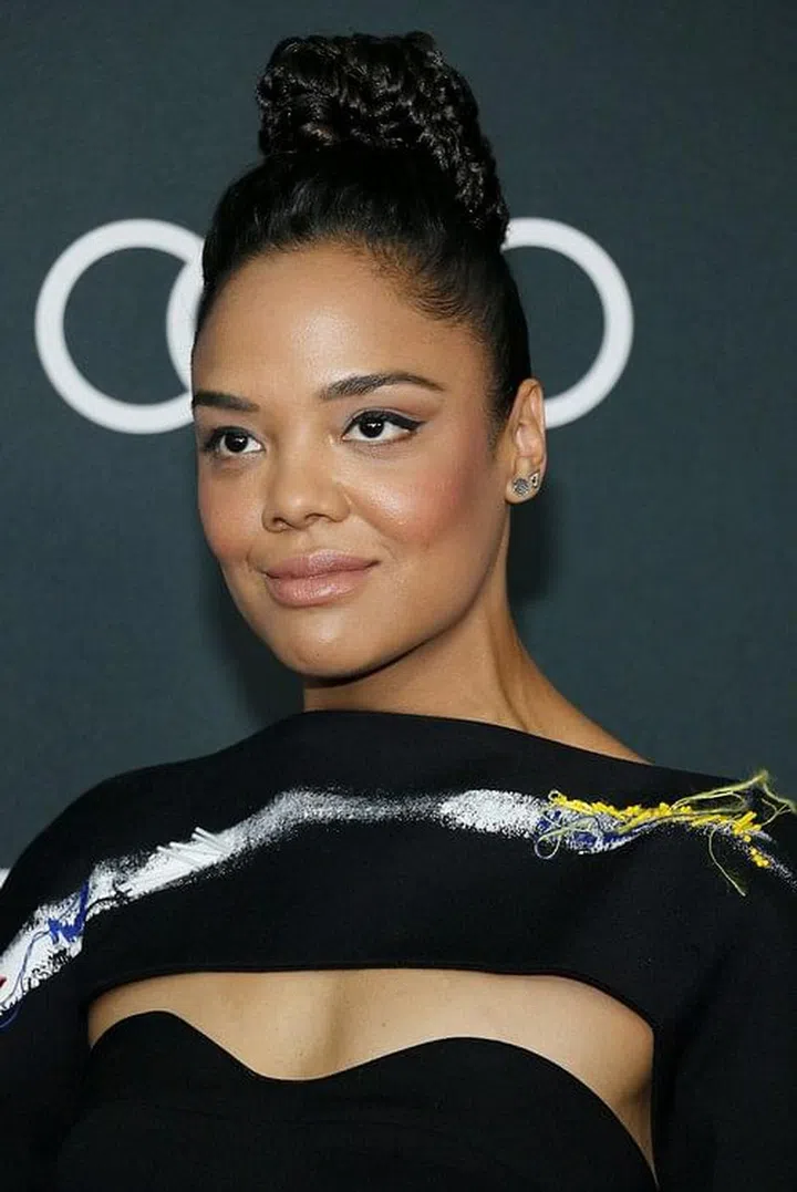 Tessa Thompson, who plays Valkyrie in Avengers, went for a bronzy look with a perfect winged eyeliner. She wore a nude-toned lipstick and let her braided bun take centrestage instead.