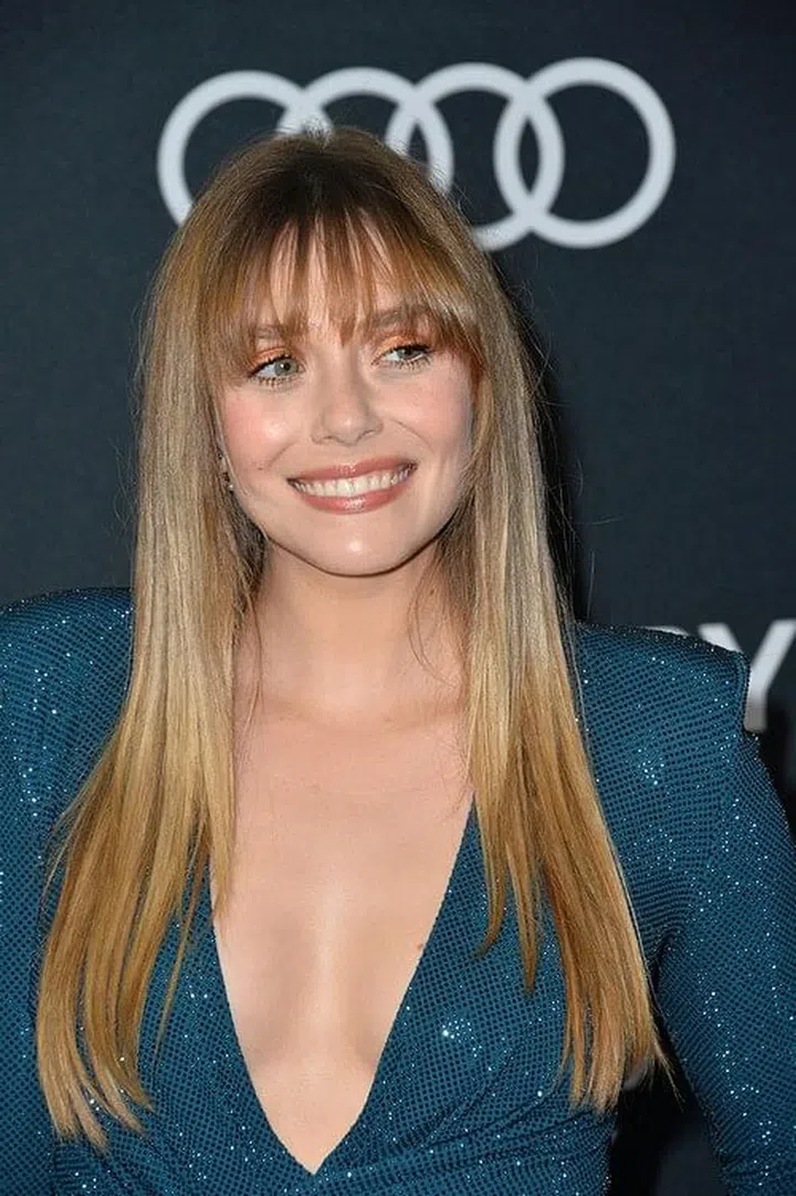 Elizabeth Olsen, who plays Scarlet Witch Wanda in the movie, went with pastel orange eyeshadow and a nude-toned lip (like many of her co-stars). But what’s great about this look is the messy-but-cute curtain bangs that she’s sporting, which we’re bringing to our hairdresser the next time we want to get curtain bangs.