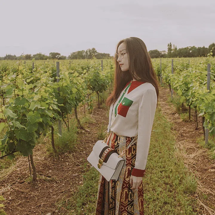“The Flowers of War” actress went ladylike and polished with her buttoned-up pristine colour block blouse and her patterned midi skirt. Oh, and her vintage circle glasses didn’t hurt the look either!