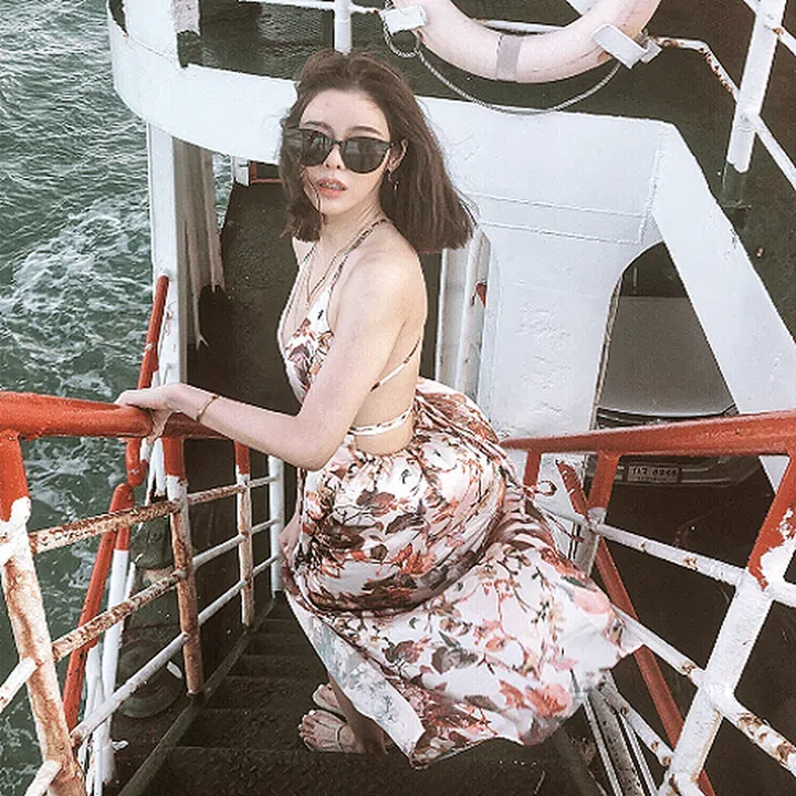 The Thai actress brought sexy back (literally) with her backless floaty printed floor-sweeper. She completed the boho and feminine look with a pair of strappy sandals, dainty jewellery and oversized sunglasses.