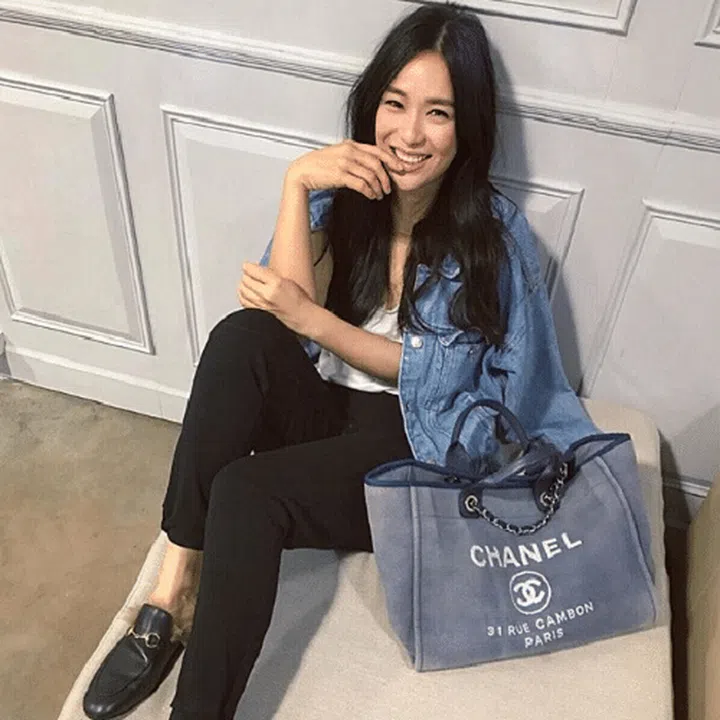 The Taiwanese actress opted for a simple black tank top and denim jeans ensemble while out and about in Taipei. Her Chanel bucket bag and mustard belt adds a punch of fun to the look.
