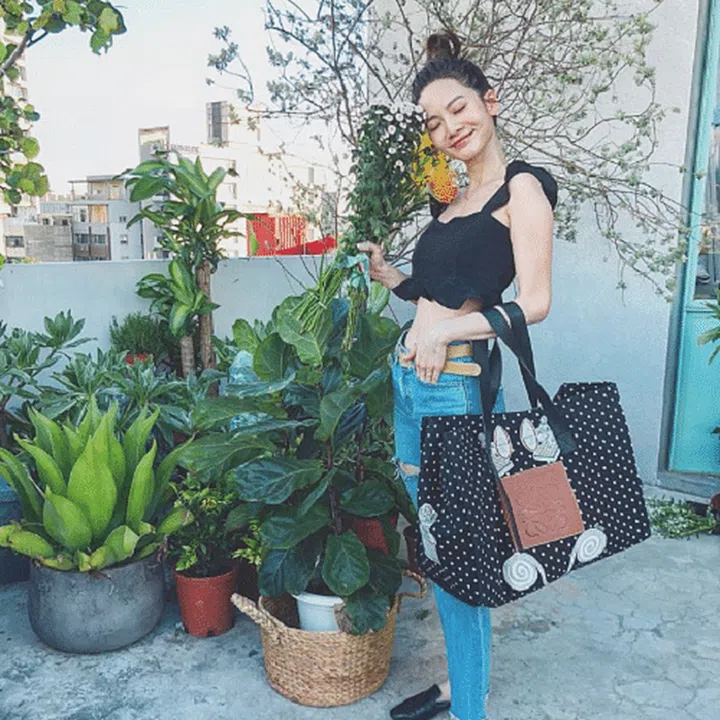 You can choose to pair yours with a bold-hued suit or atheleisure getup like this casual minimalist outfit seen on Taiwanese actress Joanne Tseng.