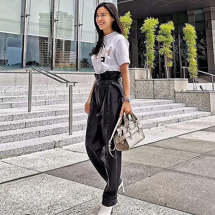 Sometimes, a statement bag is all you need to amp up a casual outfit. Jesseca definitely knows this, accessorising her get-up of a simple T-shirt and belted pants with a show-stopping shoulder bag.