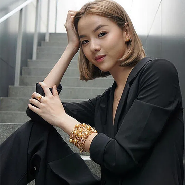Fann always exudes sophistication and elegance. Case in point: this monochrome look of an all-white jumpsuit with a blazer-style upper and wide-legged bottom. She keeps it clean by pairing it with just three simple gold bracelets.