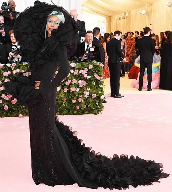 It might be transgender actress Laverne Cox’s first Met Gala showing but she has proven herself to be a fashion force that can’t be stopped with this custom Christian Siriano dress. The black ruffled gown channelled the dark romantic vibes of a black orchid and made her look like a blooming glory. Topping the dramatic creation is a coordinating Rinaldy Yunardi headpiece. Talk about a big shoulder moment. See you at next year’s Met Gala, Laverne.