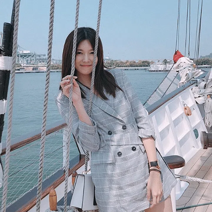 The Thai model-actress who recently bagged the “Best New Actress” award at the Asia Pacific Film Festival held in Taipei stepped out in an oversized blazer, paired with a distressed denim skirt. “Dad” sneakers add that finishing cool-girl touch.