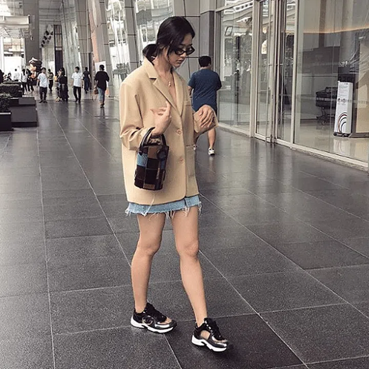 Not afraid to take fashion risks, Taiwanese actress Ouyang Nini has been rocking oversized “Dad” sneakers for quite some time. While many would use them to complete casual ensembles, Ouyang Nini has been pairing them with athleisure outfits, chic dresses and everything in between. To rock the trainers like Ouyang Nini, forget their bulky silhouette and treat them like you would with any other shoe.