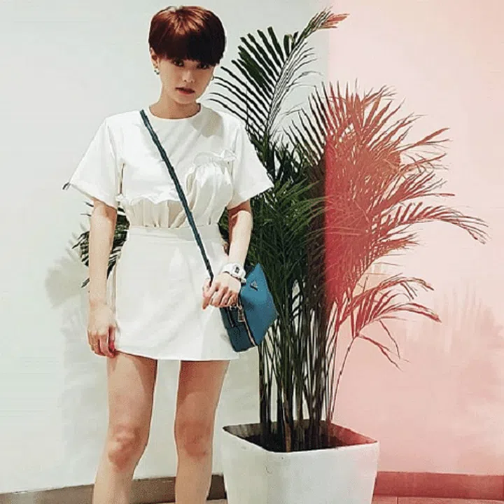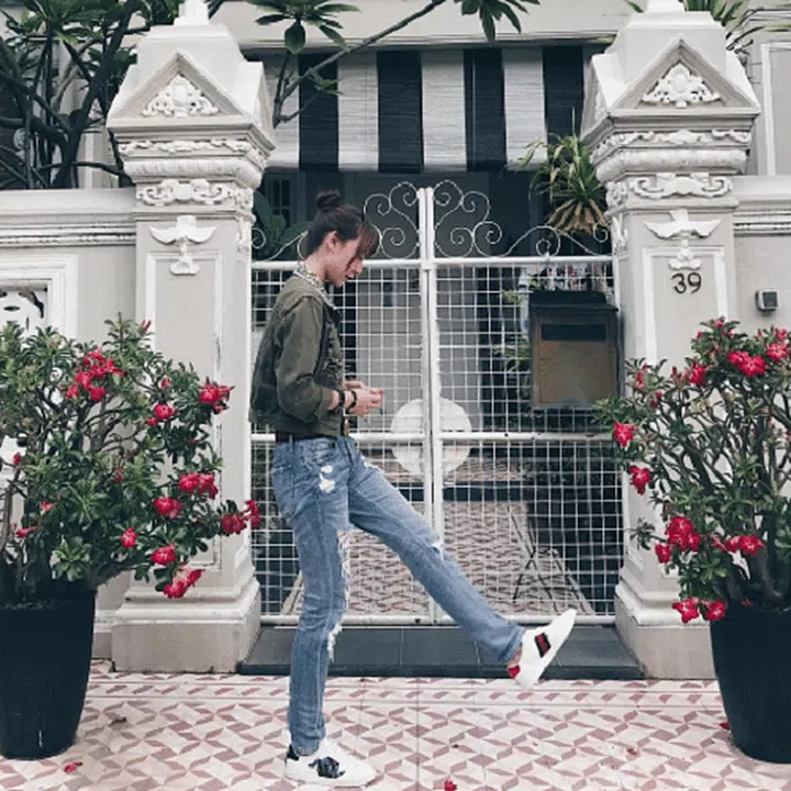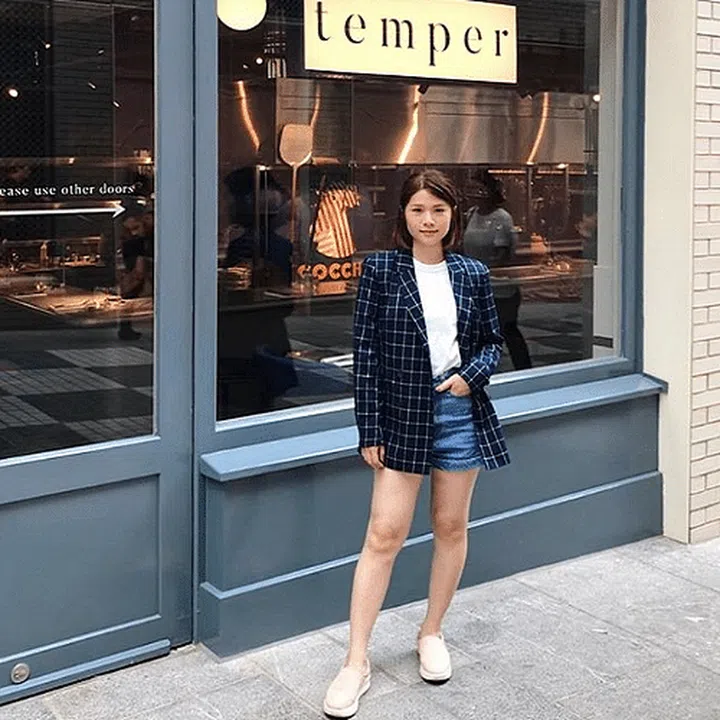 Local actress Michelle Wong who was in Seoul over the National Day break showed off a fresh way style denim cutoffs. There’s nothing sloppy about jean shorts when they are paired with a blazer. If it gets too hot outside, keep the blazer artfully draped over your shoulders.