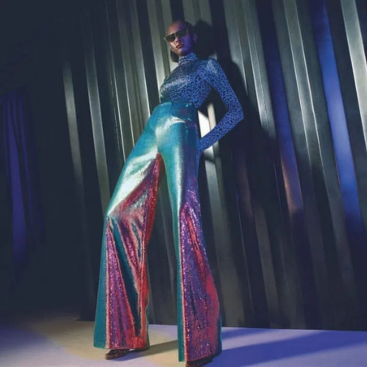 The collaboration was no different, with 28 pieces that included neon velvet separates, sequin-adorned jumpsuits and iridescent camo print mini dresses. Blinding, but hot. Get them just in time for the party season.