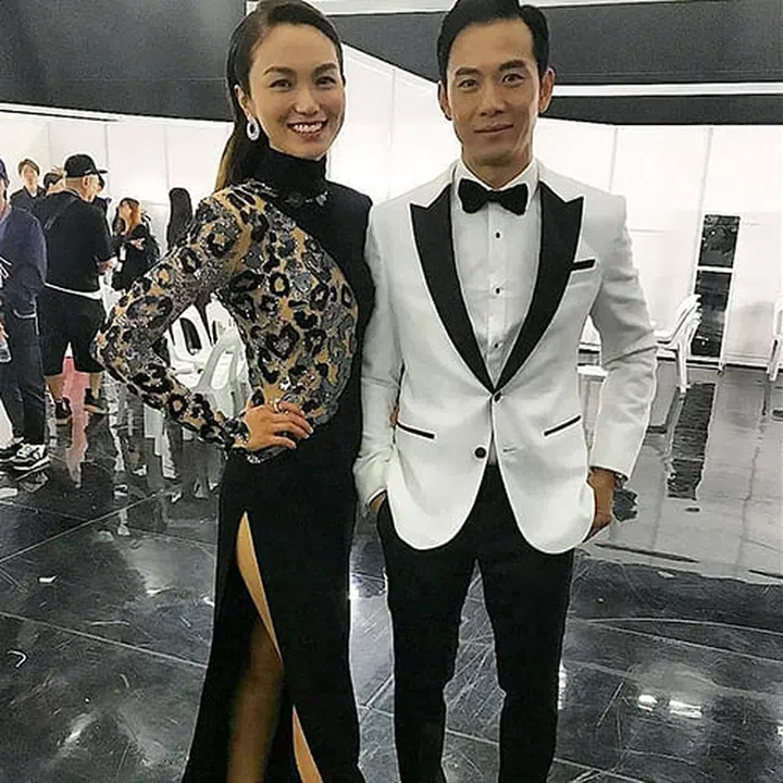 Joanne Peh is not one to shy away from showing up on the red carpet in a unique, and sometimes provocative, dress (remember the side-boob dress?) This year, she didn’t disappoint in a black dress that featured a yin-yang like design made with a translucent print. The high neck might have been a touch modest, but she made up for that with an eye-popping thigh high slit that showed off her long, toned gams.