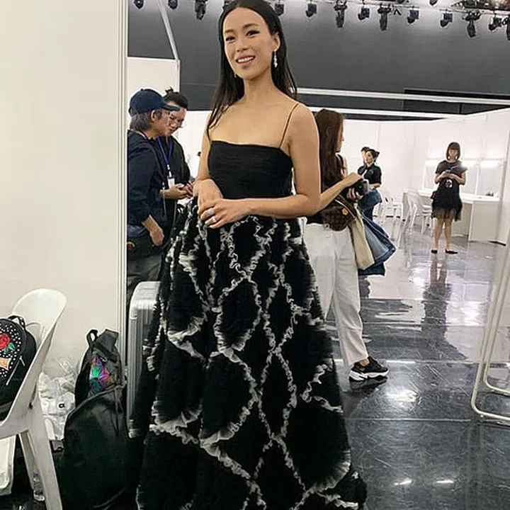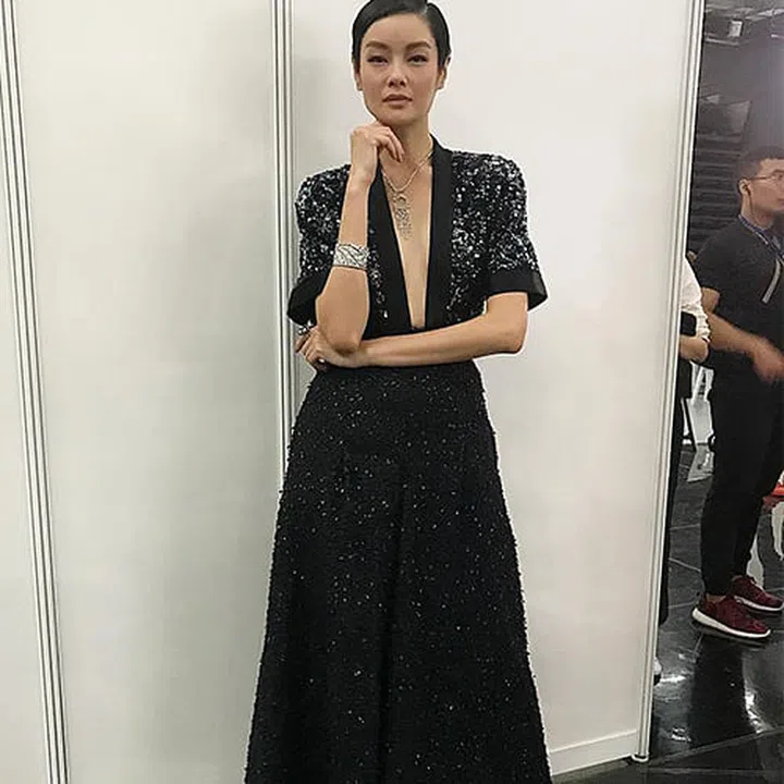 The usually poised Taiwanese female Mandopop singer-actress Bowie Tsang, who is the daughter of actor Eric Tsang, was in a rather ho-hum colourblock dress. While the cold-shoulder detail was flowy and feminine, the garb looked simply too ordinary and casual for the black-tie event.