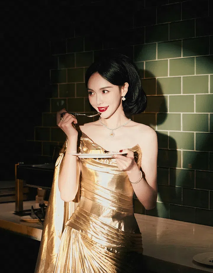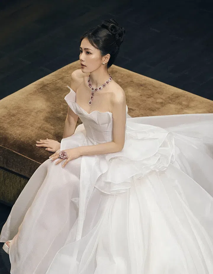 Yang Zi, crowned "Weibo Queen" for the third time, looked stunning in a one-shoulder gown from the Valentino The Beginning haute couture series.