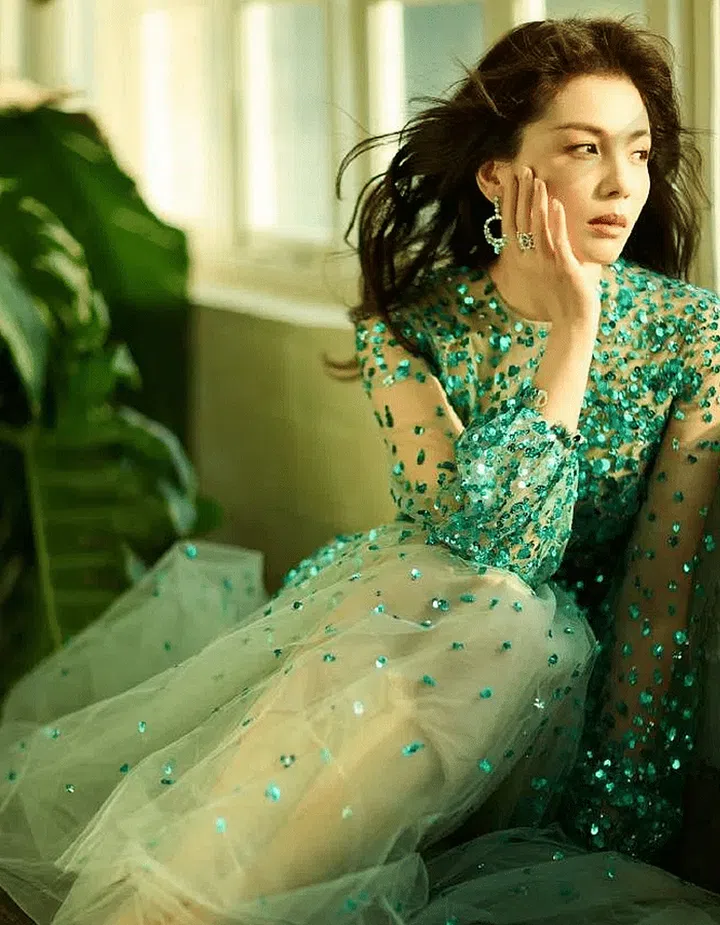 Liu Tao rocked a look from Valentino's 2024 Early Spring collection, featuring intricate embroidery. The sequins embedded in chiffon showcased her silhouette.