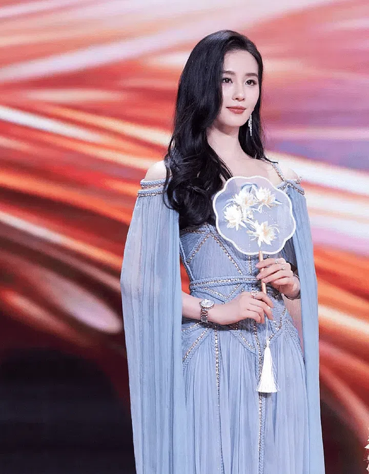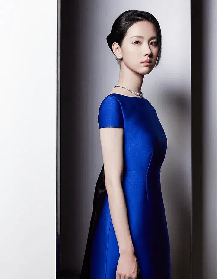 Chen Duling looked beautiful in a custom blue gown from Prada, featuring a sleek and simple design that exuded elegance.